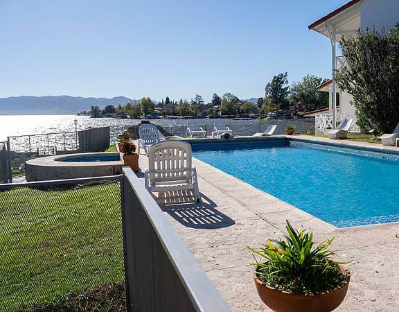 También tenemos un gran quincho con una fantástica parrilla para hacer reuniones y asados, con cocina totalmente equipada. Todo inmerso en un espacio verde a orillas del Lago San Roque, con excelente mobiliario de jardín. El hidromasaje de la piscina complementa a la perfección el descanso, con el agua templada para un relax total.